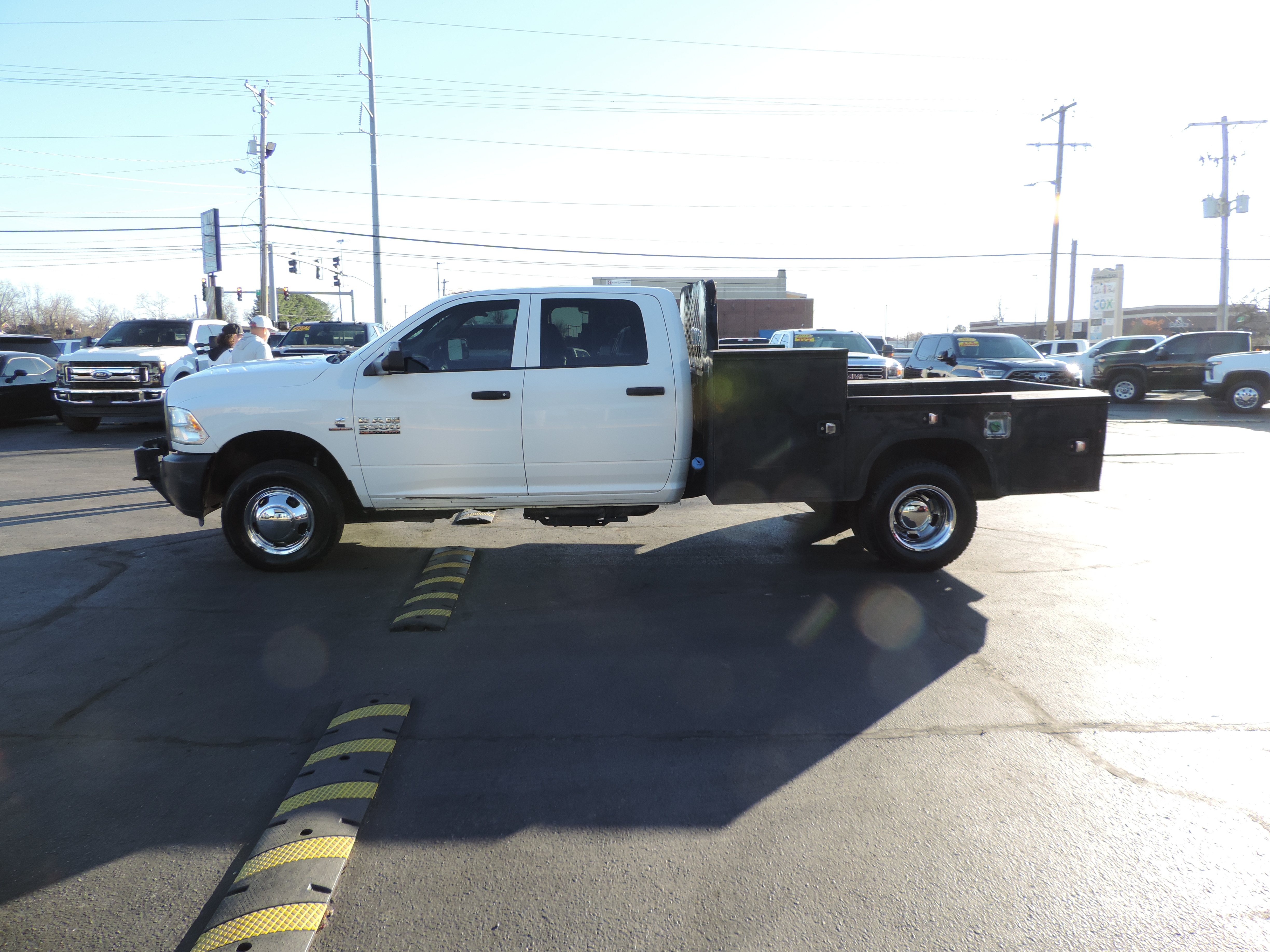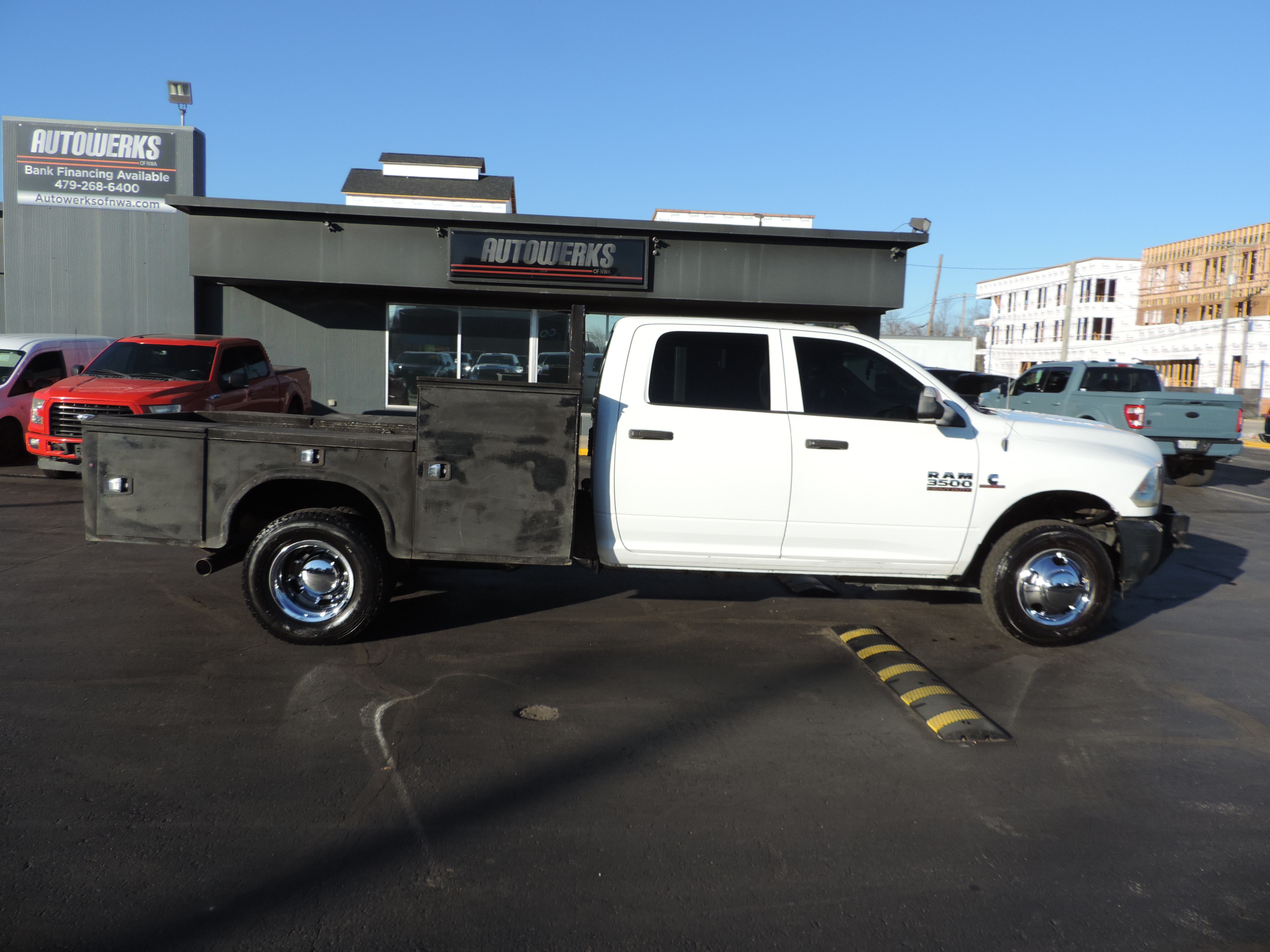 2015 Ram 3500 Crew Cab 4x4 Dually Diesel. Vinyl Interior, Aisin Automatic Transmission, Power Locks And Windows, Utility Bed, Tow Package, Tow Mirrors, 6.7L Diesel